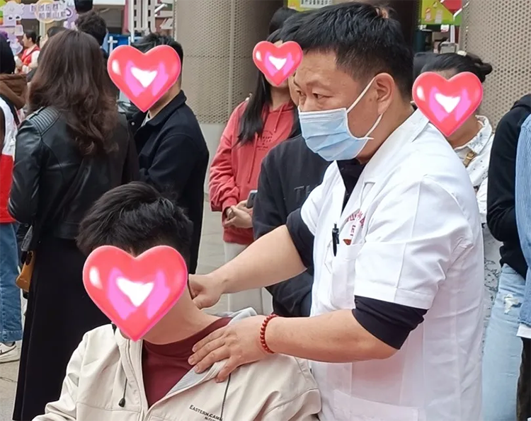 在現(xiàn)場,他們熱情接待每一位前來的群眾,面對患有頸肩腰腿痛疾病的病人,蔡若賦醫(yī)生耐心傾聽癥狀描述,仔細(xì)詢問病史,結(jié)合專業(yè)的體格檢查與中醫(yī)治療手法,為他們推拿肩頸,幫助緩解疼痛,并給予他們個性化的治療建議。