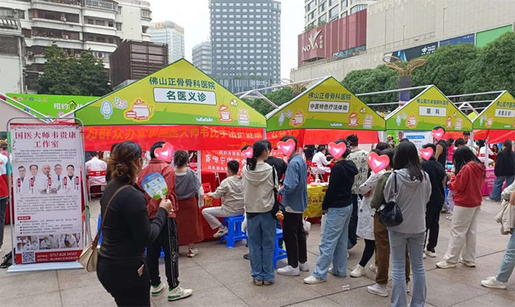 4月13日下午2:00,“相約杏林 健康禪城”——禪城中醫(yī)文化養(yǎng)生市集正式開攤。我院黨支部積極響應(yīng),投身于這場中醫(yī)文化的盛會,組織骨三科蔡若賦醫(yī)生和國醫(yī)大師韋貴康工作室吳秋彥醫(yī)生到現(xiàn)場開展“我為群眾辦實(shí)事 國醫(yī)大師韋氏手法護(hù)健康”義診活動,以實(shí)際行動為群眾送去健康與關(guān)懷,傳遞中醫(yī)傳統(tǒng)文化?,F(xiàn)場服務(wù)人次超一百人。