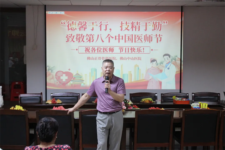 醫(yī)務(wù)科科長麥覺率先致辭:“醫(yī)師沒有固定的節(jié)日,節(jié)假日查房、手術(shù)、門診是常態(tài);但醫(yī)師又天天都在過節(jié)——看到病人癥狀改善、康復(fù)出院時的笑容,就是對醫(yī)師來說最珍貴的節(jié)日禮物。”他以樸實的話語道出醫(yī)者情懷,并勉勵大家“快樂工作,開心生活”。