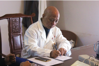 導(dǎo)醫(yī)引導(dǎo)病人進(jìn)入國醫(yī)大師韋貴康教授的接診室里后,接診室里就一下子熱鬧了起來。這些患者來自各地,近則廣州,遠(yuǎn)則黑龍江;男女老少,小到13歲,大到75歲;有些是為自己,有些是則帶了家人,大家都特地慕名前來,就是為了找國醫(yī)大師韋貴康教授求醫(yī)。