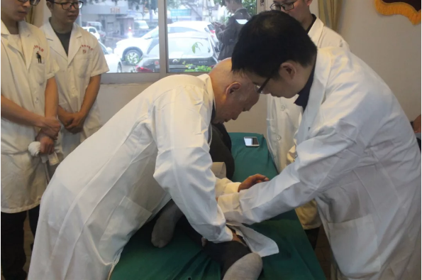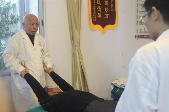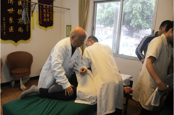 △國醫(yī)大師韋貴康教授為陳先生進(jìn)行手法治療