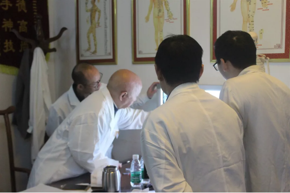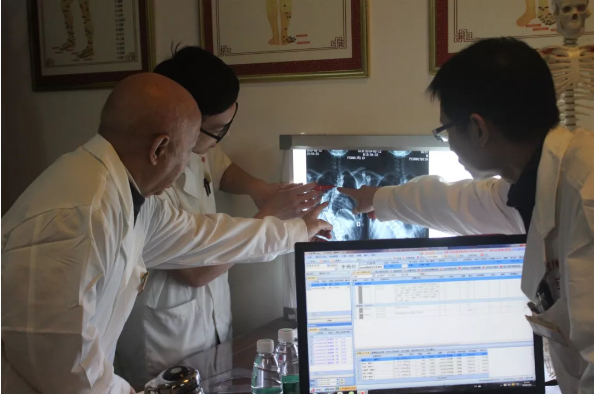 因為有些患者的脊柱類疾病都需要經(jīng)過漫長的治療才得以控制和恢復(fù),所以韋教授一邊在為患者看診時,還會一邊認(rèn)真地與國醫(yī)大師韋貴康工作室的韋氏弟子們交流分析病情,為他們的后續(xù)治療提供指導(dǎo)建議。