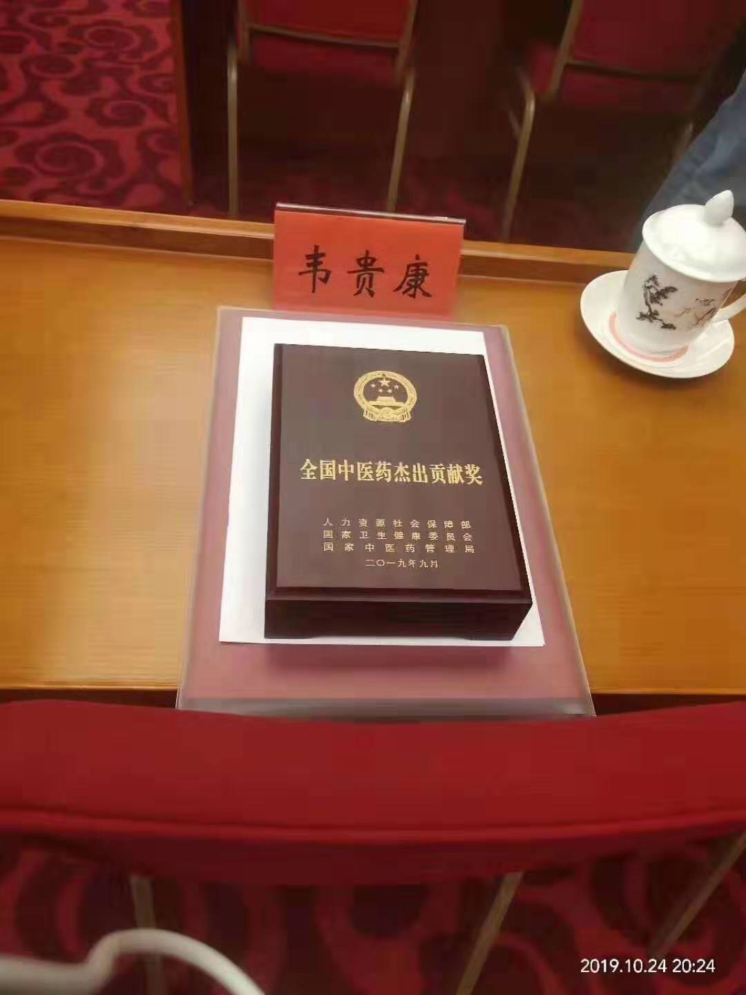 2019年10月25日,韋教授榮獲又一重量級榮譽——“全國中醫(yī)藥杰出貢獻獎”稱號。
