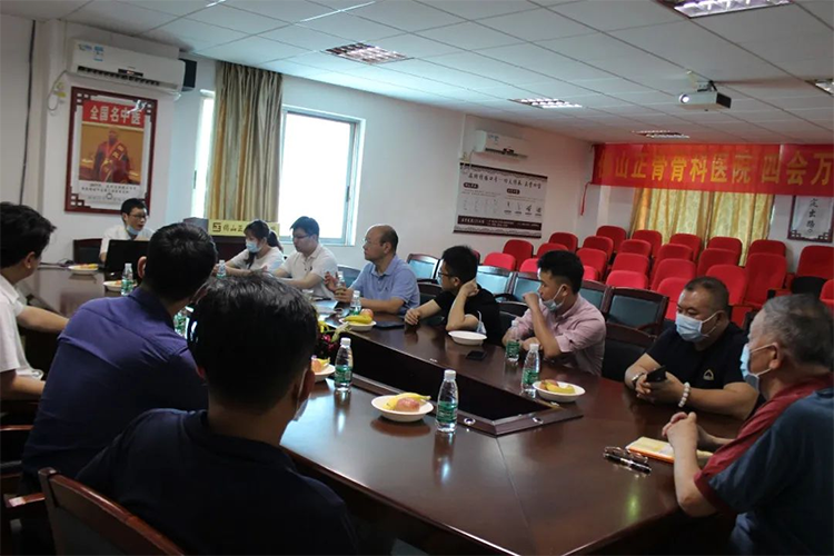 參觀結(jié)束后,雙方領(lǐng)導(dǎo)在會議室就肌骨超聲介入項(xiàng)目進(jìn)行學(xué)術(shù)交流。在雙方相互介紹了此次參加交流會的相關(guān)領(lǐng)導(dǎo)后,佛山正骨骨科醫(yī)院副院長致歡迎辭,對此次參加交流會的四會萬隆醫(yī)院領(lǐng)導(dǎo)們表示熱烈歡迎。