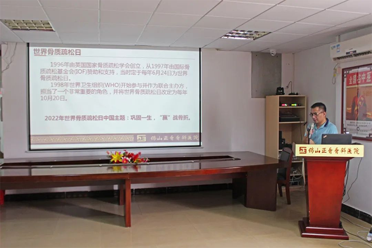講座中,黃醫(yī)生以PPT字配圖的講課形式,用通俗易懂、生動詳實、由淺入深的理論,講解了什么是老年骨質(zhì)疏松癥,骨質(zhì)疏松癥的危害,發(fā)病原因,該癥狀的高危人群,臨床表現(xiàn)及綜合防治等知識。