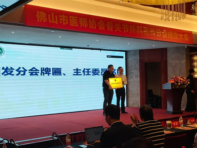 佛山正骨骨科醫(yī)院馮立科主任榮獲副主任委員銘牌