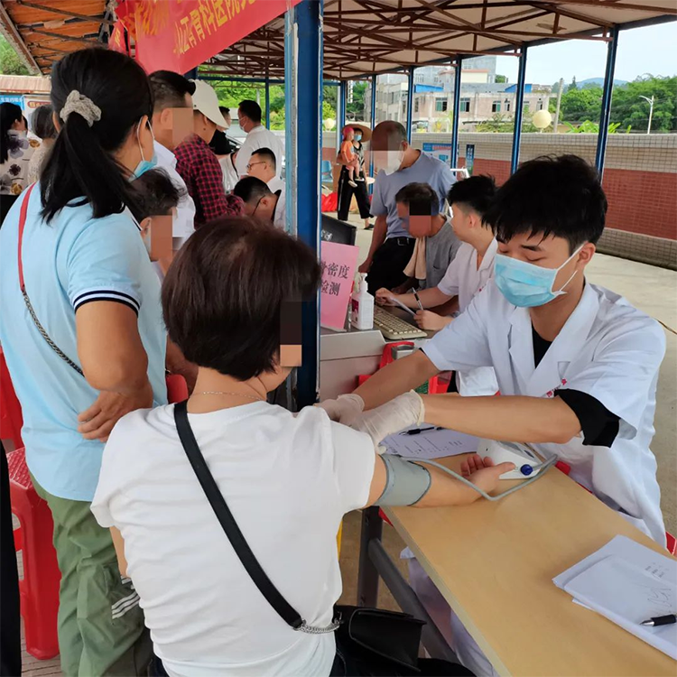 佛山正骨骨科醫(yī)院醫(yī)護(hù)人員耐心地與每一位前來問診的市民進(jìn)行交流,測量血壓;骨科、外科、康復(fù)科醫(yī)生開展檢查、診療服務(wù),詳細(xì)了解居民的身體狀況,解答村民群眾提出的中老年各類骨科問題,給出合理的健康指導(dǎo)及建議,并為行動不便和高齡老年人提供就醫(yī)指導(dǎo),發(fā)放骨質(zhì)疏松宣傳單。