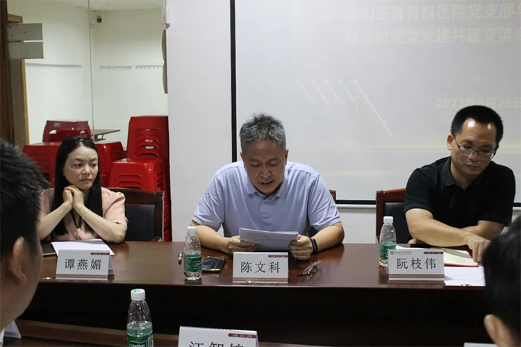 交流會上佛山正骨骨科醫(yī)院黨支部書記李碧云介紹簡要介紹了我院黨建工作和醫(yī)院概況、闡述黨建共建計劃,在場的領(lǐng)導(dǎo)對我院的情況更為了解。