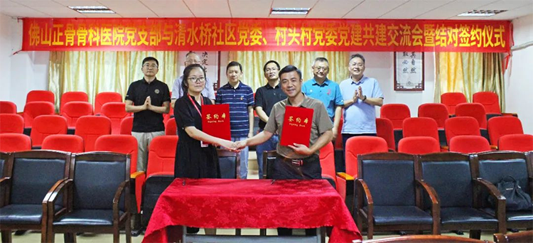 儀式上,佛山正骨骨科醫(yī)院黨支部書記李碧云分別與清水橋社區(qū)黨委書記江智錦、村頭村黨委副書記區(qū)偉康進(jìn)行黨建結(jié)對簽約,開啟了“醫(yī)院+村居”共建工作新模式。雙方將以黨建工作為紐帶,通過“共建組織、共抓隊伍、共享資源、共謀發(fā)展”的工作思路,實現(xiàn)黨建業(yè)務(wù)雙提升的目標(biāo)。