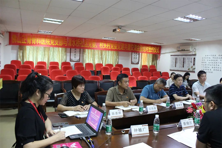 佛山正骨骨科醫(yī)院黨支部書記李碧云與清水橋社區(qū)黨委書記江智錦簽約